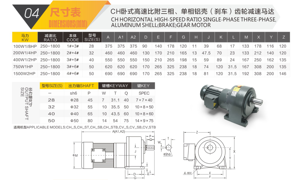CH卧式高速比减速电机