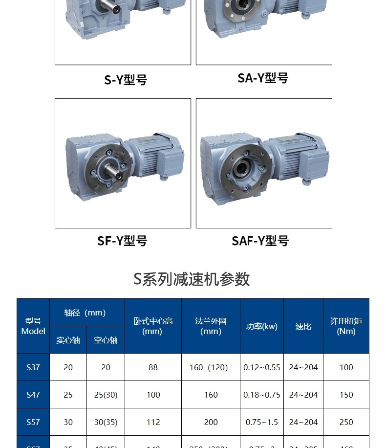 1、确定减速机安装位置:M1,M2,M3,M4,M5,M6(关系到加油量);2、电机接线盒角度:0°、90°、180°、270°(关系到安装和接线);3、电机出线口位置1、2、3、(正常位置不标:出线口朝下);4、出轴方向的确定;5、参数:功率,转矩,速比,使用系数,环境温度等;6、RF系列输出法兰直径有2-3种(涉及客户安装工位,具体参考样本);7、SA47-SA97有两种空心轴径尺寸(关系到安装);8、输出旋转方向,可以根据电机接线调整,不需要刻意备注CW/CCW。